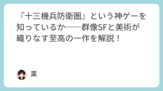 ゲーム 『十三機兵防衛圏』という神ゲーを知っているか──群像SFと美術が織りなす至高の一作を解説! ヴァニラウェア制作の群像SFアドベンチャー+リアルタイム戦術ゲーム『十三機兵防衛圏』について解説しています。 2025.10.29 ゲーム